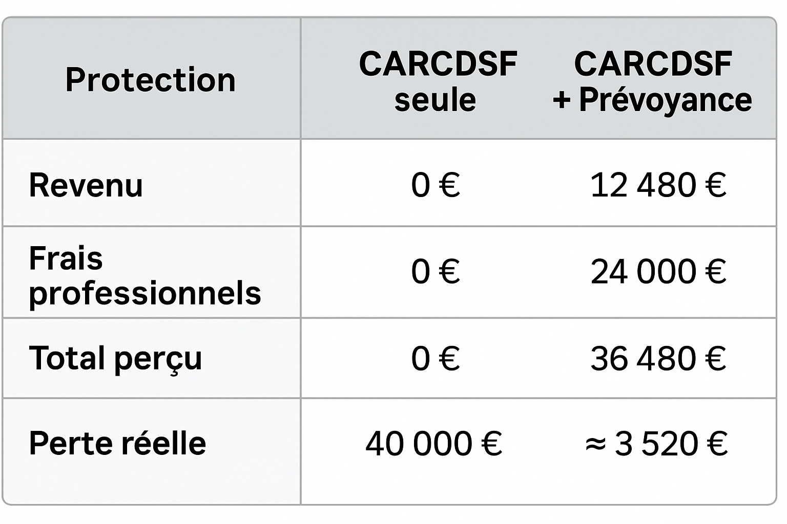 Dans tous les cas, la CARCDSF ne couvre rien avant 90 jours, il est donc indispensable d’adapter la franchise à votre situation personnelle.